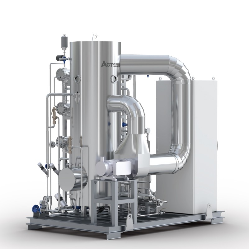 亞光最新研發(fā)生產的熱壓蒸餾水機使用了MVR節(jié)能技術,具有產水優(yōu)質、節(jié)能效果顯著、安裝使用靈活等優(yōu)點。亞光熱壓蒸餾水機產量可從1T/h至100T/h[1],既可為客戶提供大處理量中心式制水方案,基于其超低的產量范圍和撬裝模塊化設計,也可為客戶提供靈活的分布式注射用水生產解決方案。